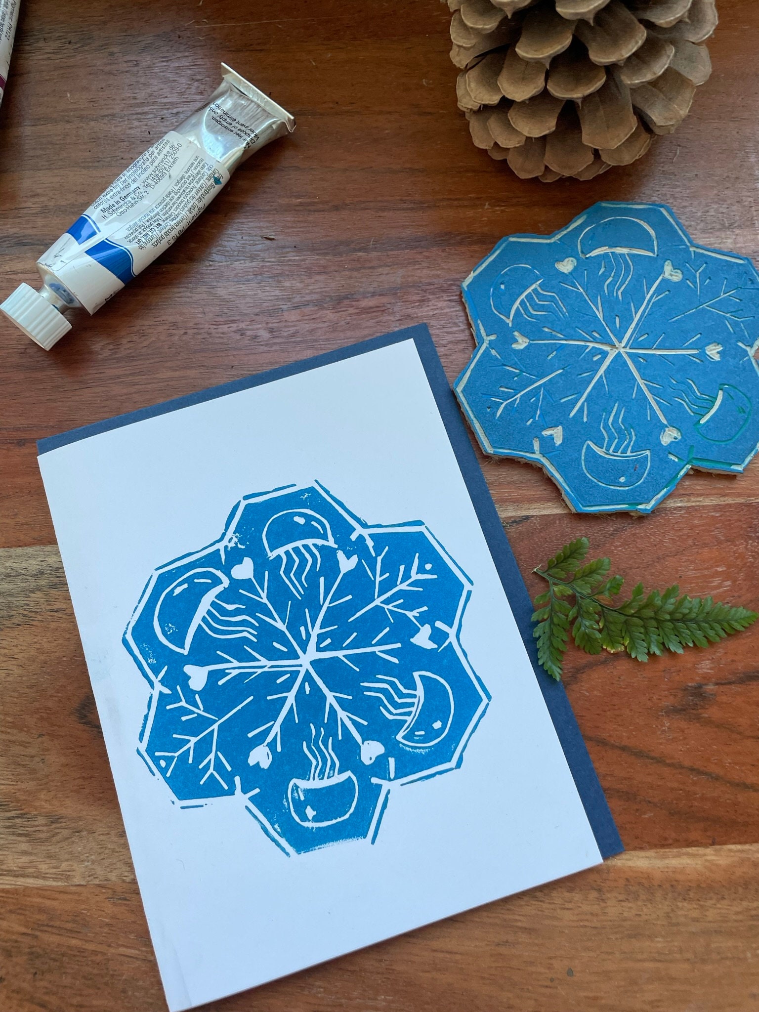 Christmas Cards - Set of 3 Cards - Original Hand Made Linocut Print - Horseshoe Crab, Jellyfish, Blue Crab