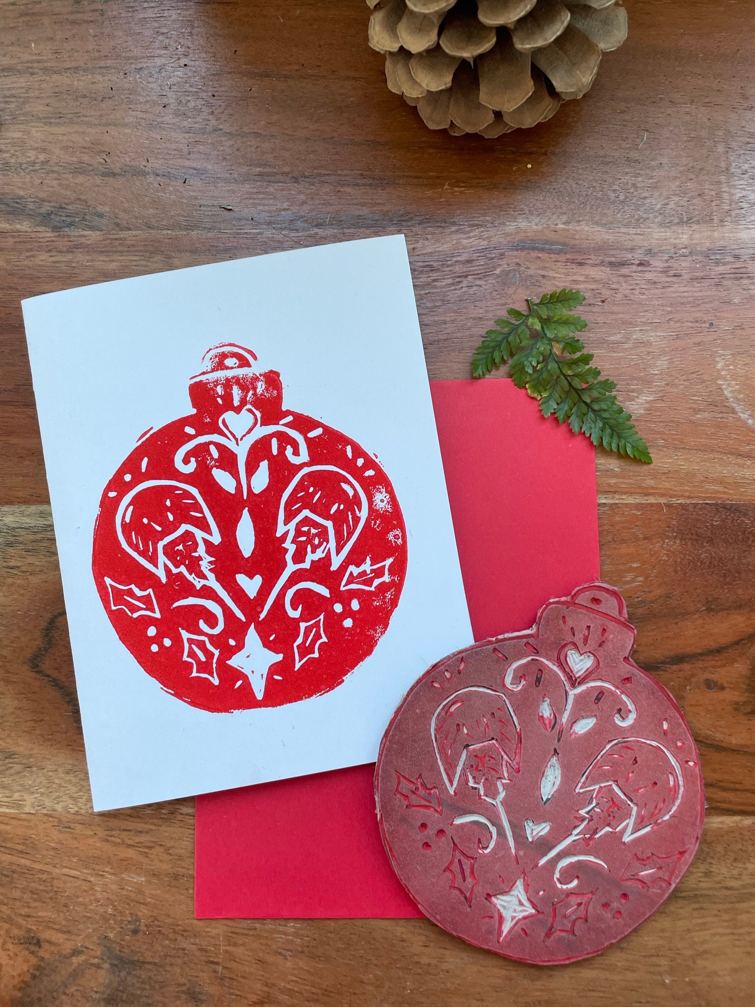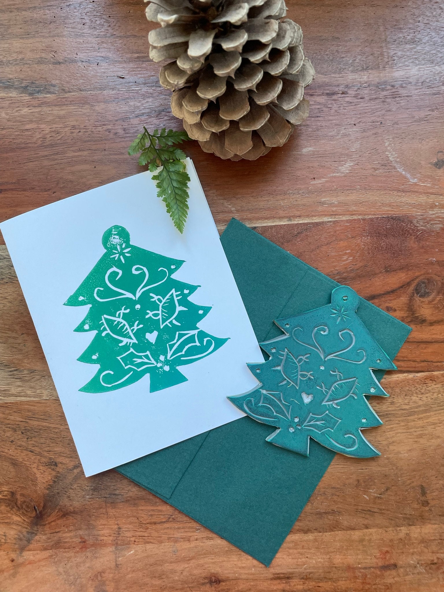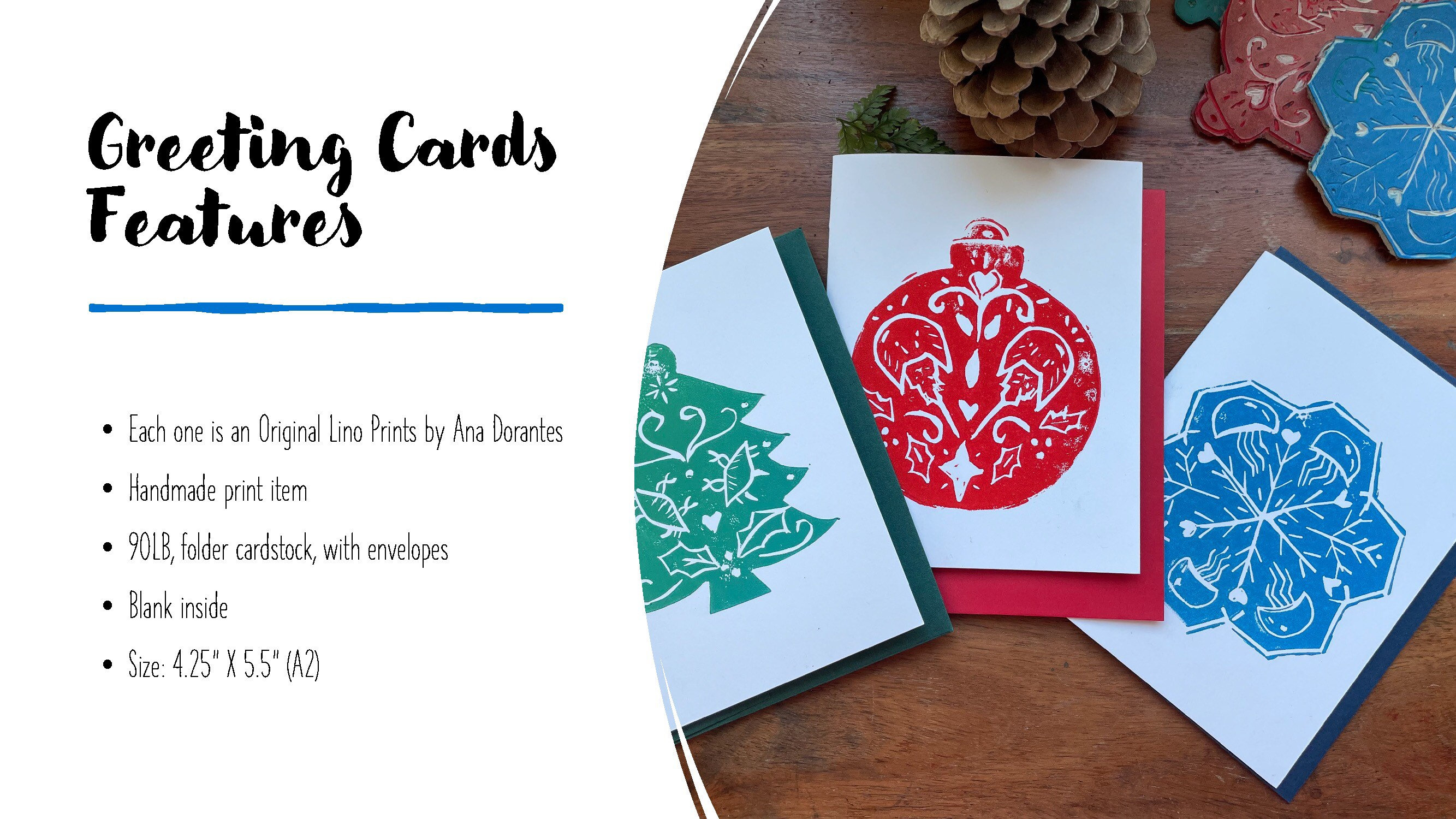 Set of 3 cards. Hand made linocut prints on Kraft paper.