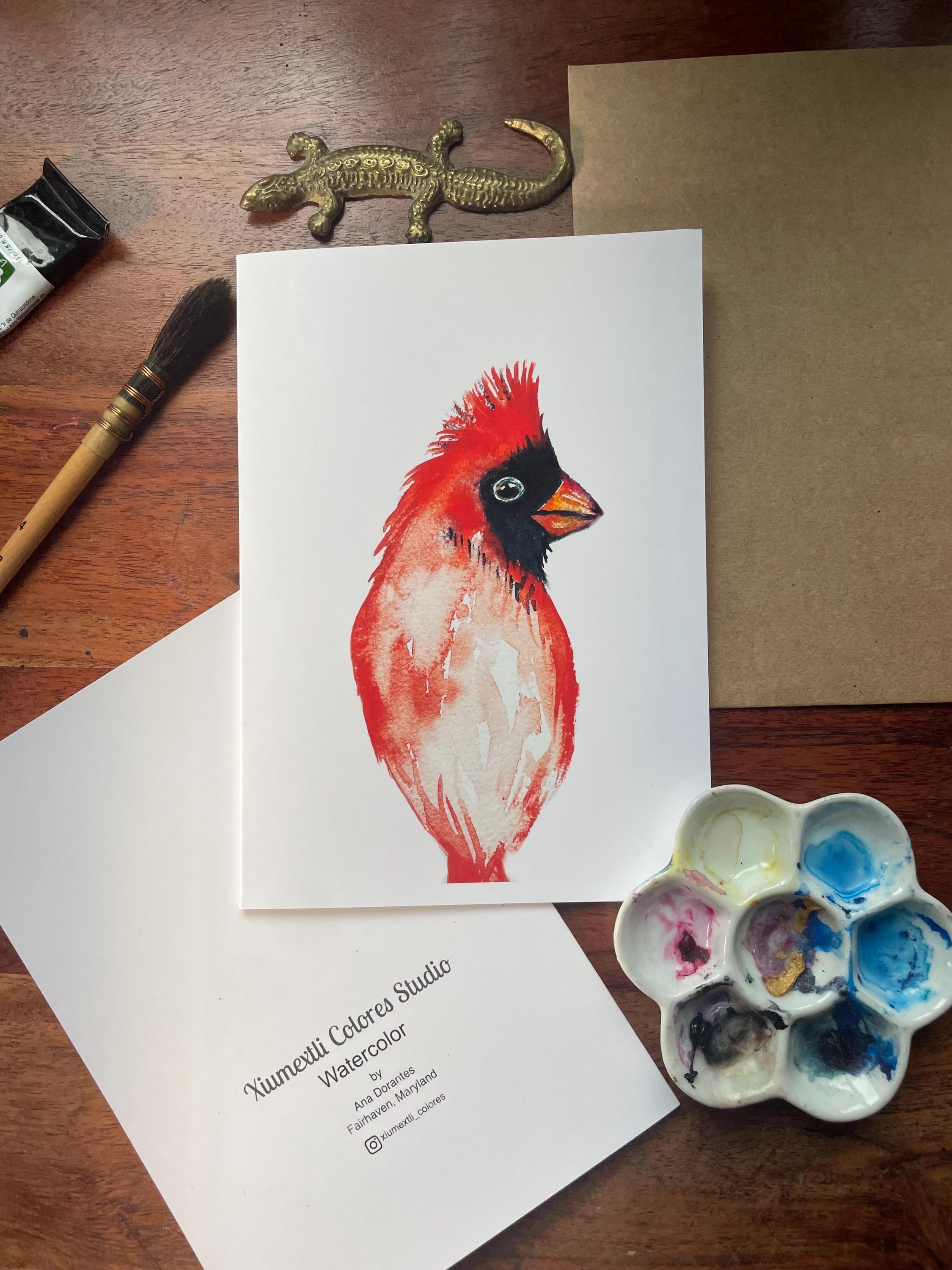 Each card is a high-quality print of my original watercolor paintings, created and printed in my small studio in Fairhaven, Maryland. Printed on 60 lb glossy card stock, every card measures 5 x 7 inches, is blank inside, and comes with a matching envelope.